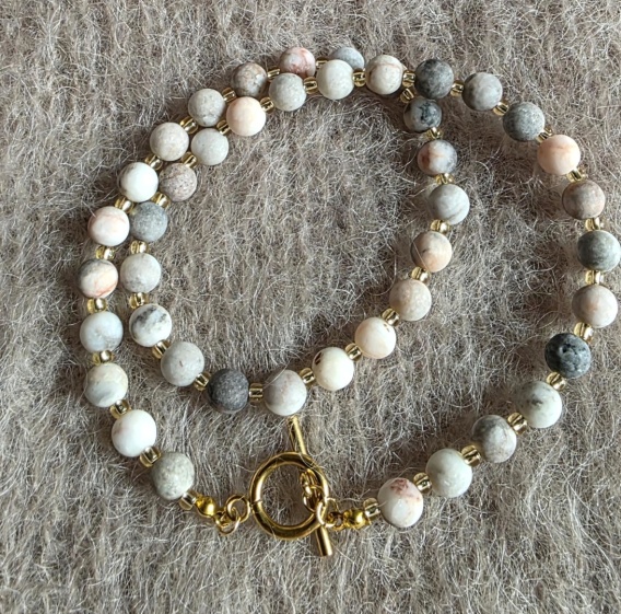 CHRYZANTEMA naszyjnik-choker wykonany z agatu chryzamentowego, zapięcia stal szlachetna.