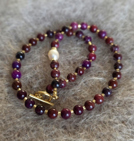 DROP OF WINE naszyjnik-choker wykonany z fioletowego jadeitu, zapięcia stal szlachetna.