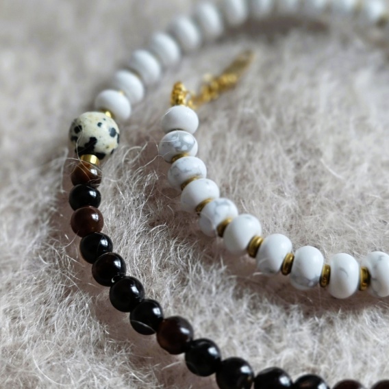 ELEGANT naszyjnik-choker wykonany z białego howlitu oraz agatu kawowego, zapięcie stal szlachetna.
