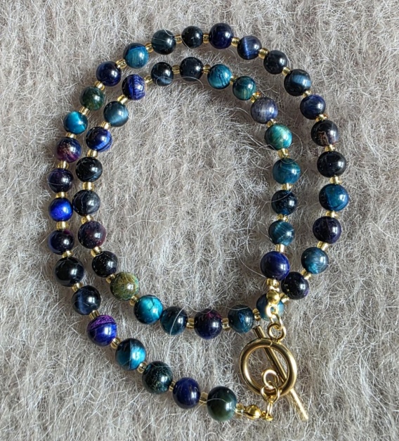 GALAXY naszyjnik-choker wykonany z niebieskiego tygrysiego oka, zapięcia stal szlachetna.