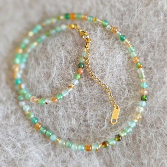 LEŚNY naszyjnik-choker wykonany agatu, kamień naturalny, kulka 4mm, zapięcia stal szlachetna.