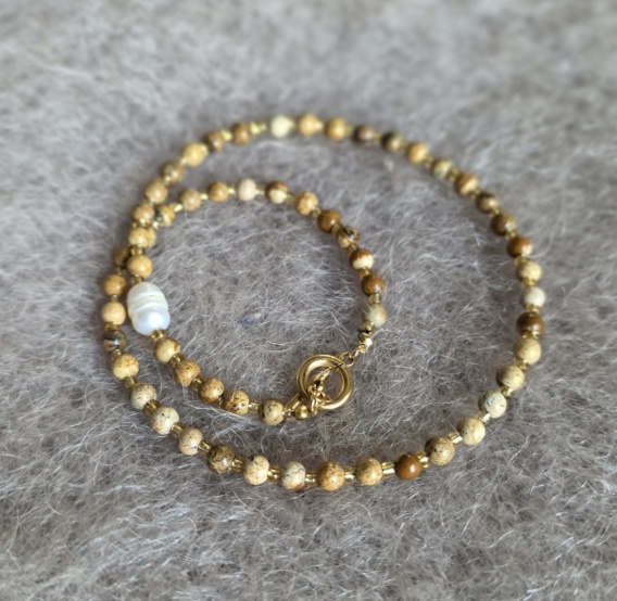 PEARL naszyjnik-choker wykonany z jaspisu krajobrazowego, zapięcia stal szlachetna.