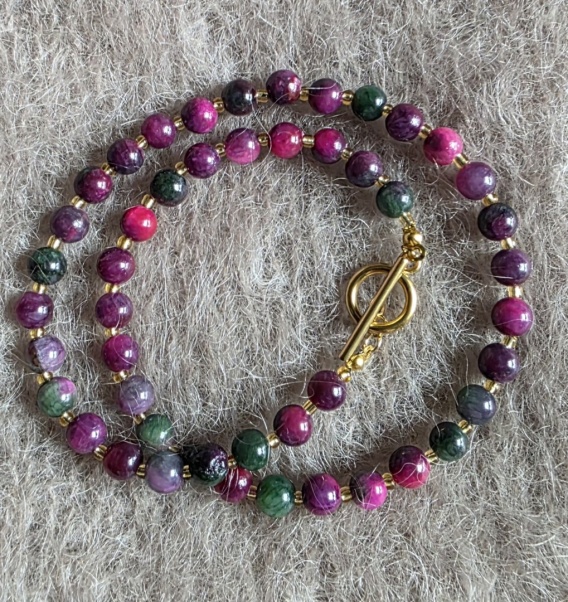 Biżuteria wykonana z kamieni naturalnych, składająca się z małych elementów (koralików, zawieszek). Produkt jest ręcznie robiony, co nadaje mu unikalny charakter.