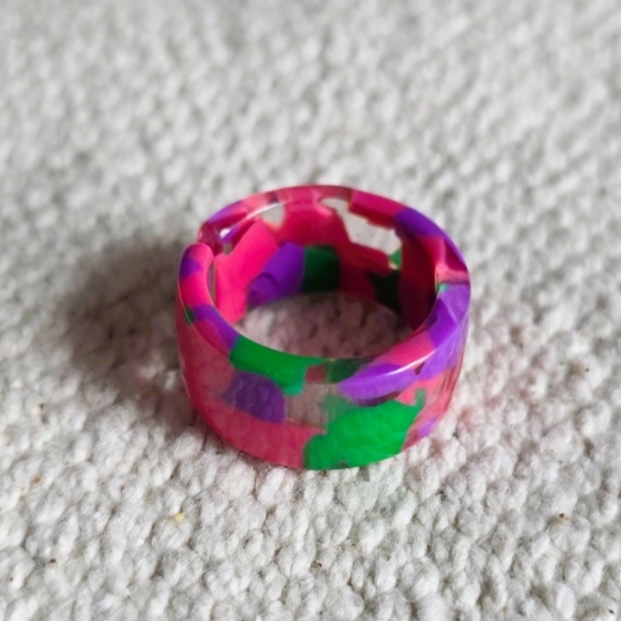 Pierścionek Happy wykonany z żywicy akrylowej.